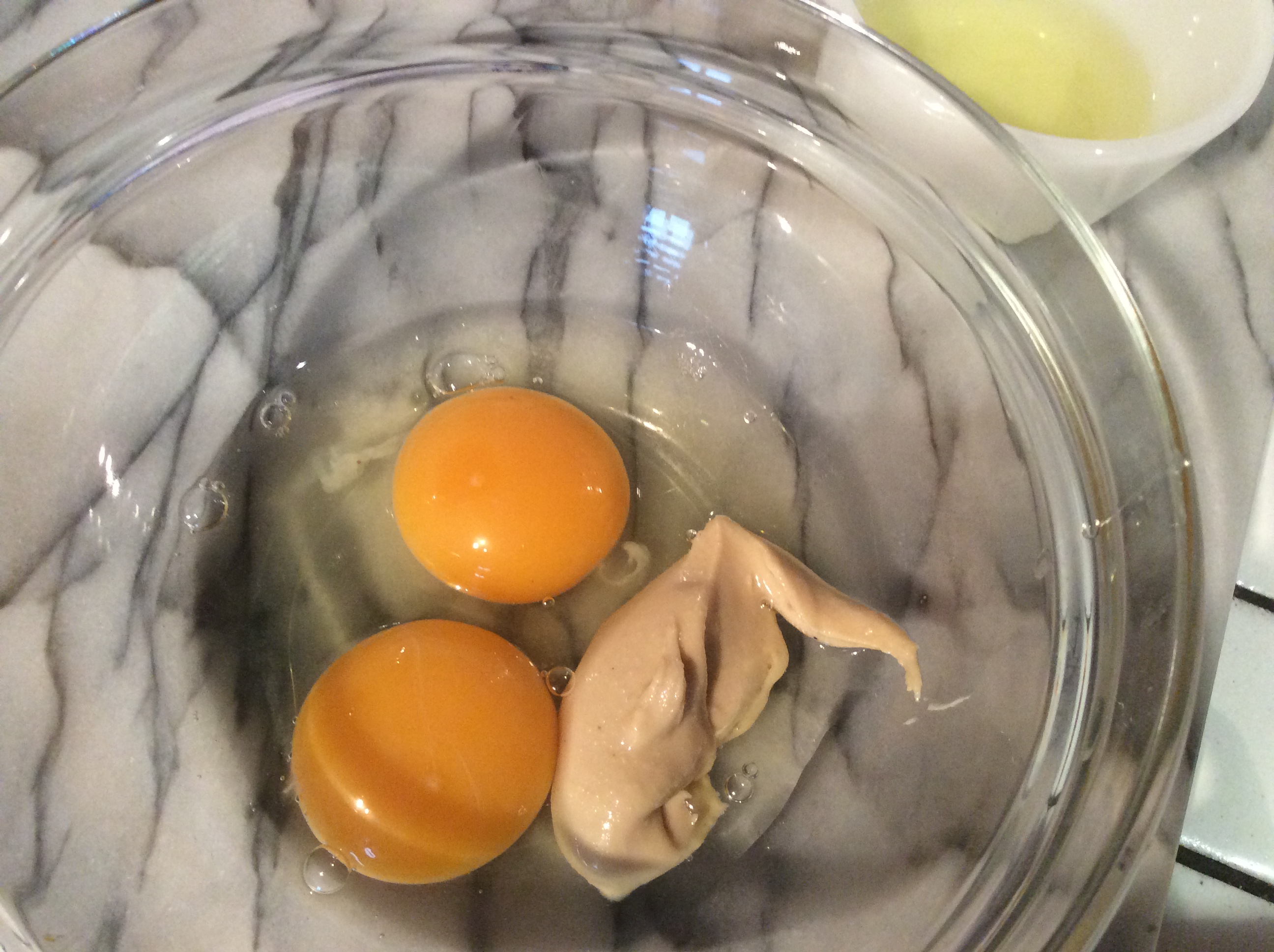 0943853D-5D8A-4FA6-847B-FDC9D23B6EA0 novembre 30, 2017Pleine résolution (2592 × 1936) un oeuf entier, un jaune, la purée de cajou... le sucre est dans le placard!