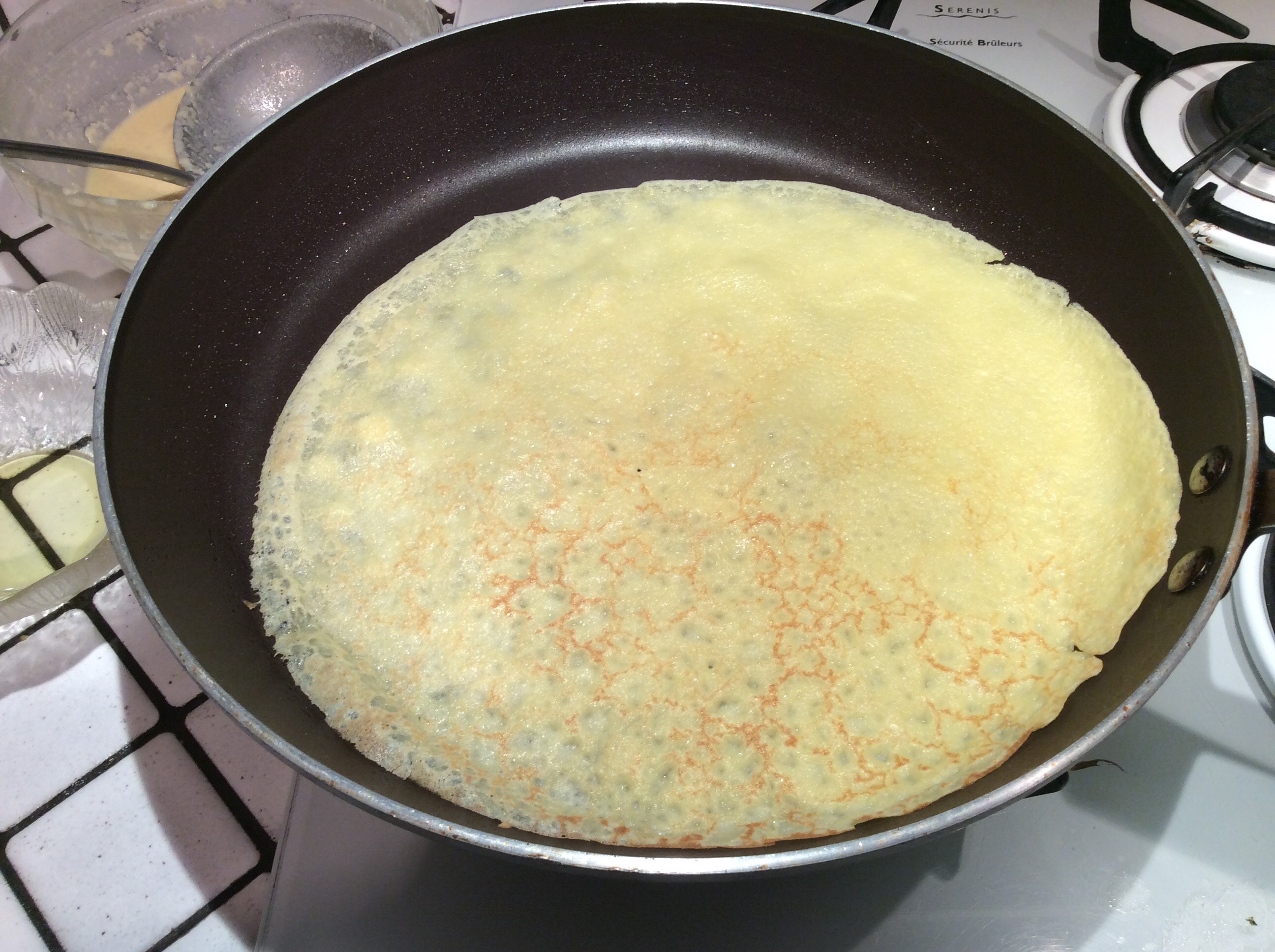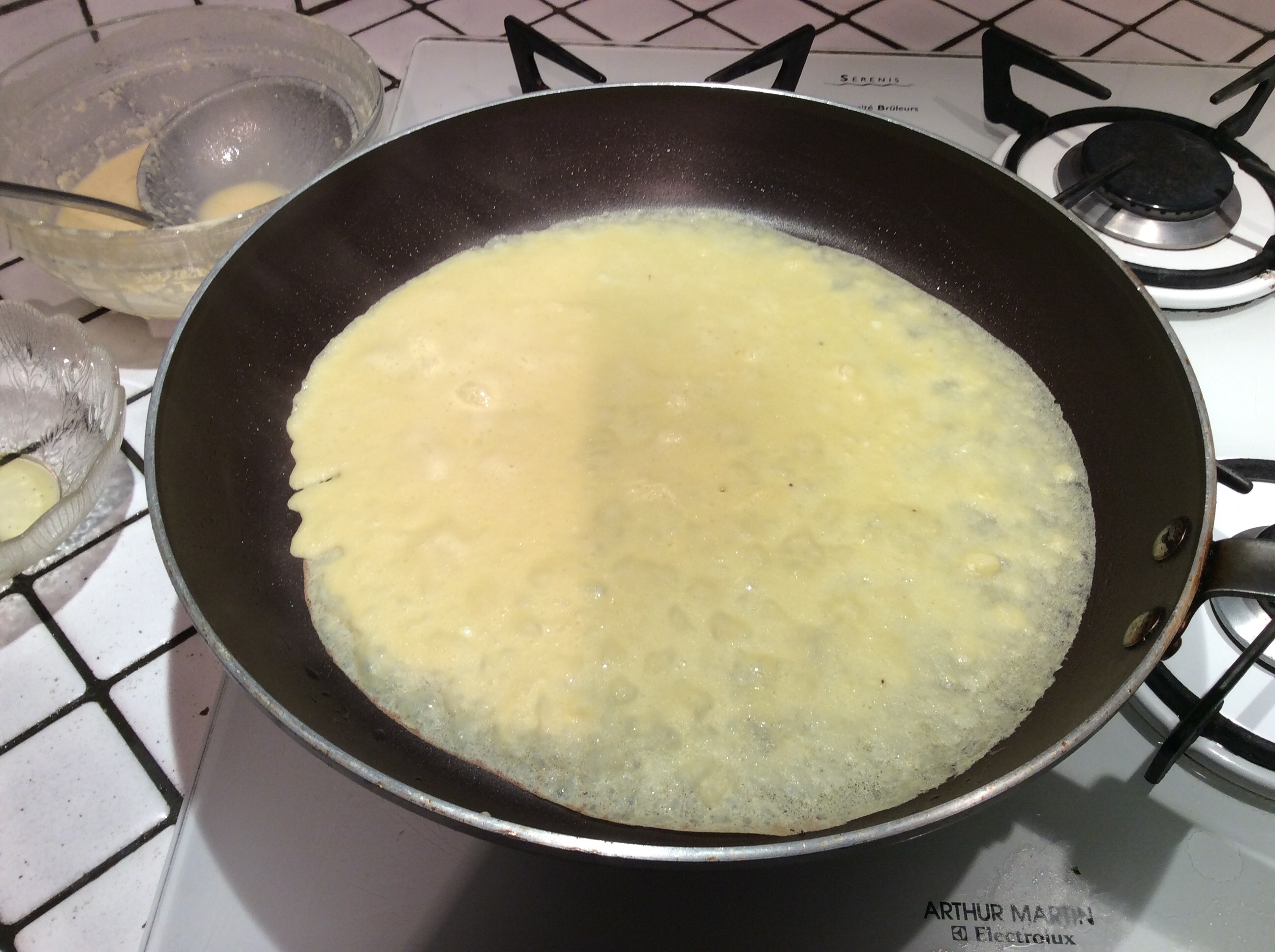 Vous pouvez constater que je ne vous ments pas: bien que la crêpe soit grande, je l’ai retournée sans problème !