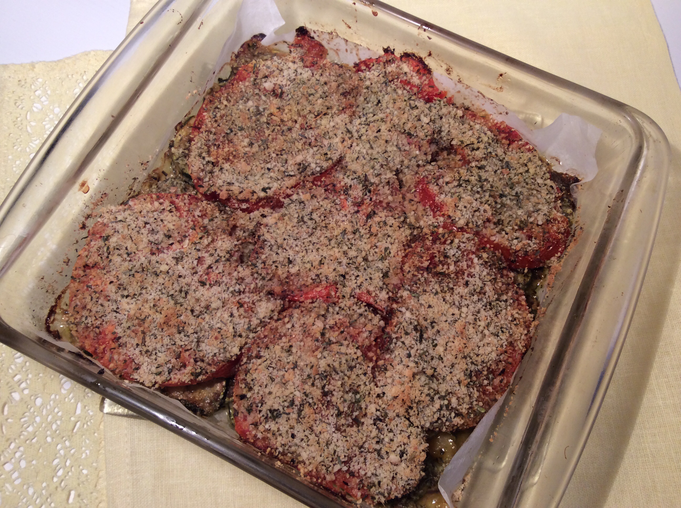 Des herbes de Provence (des vraies, bien parfumées), des légumes qui sentent l’été, de l’huile d’olive, et un mélange plein d’Oméga-3 pour un gratin original, voici un plat qui accompagnera avec bonheur poisson, viande poêlée, ou tout simplement un oeuf. En plus, la météo actuelle est idéale pour une cuisson au four. Profitons-en!