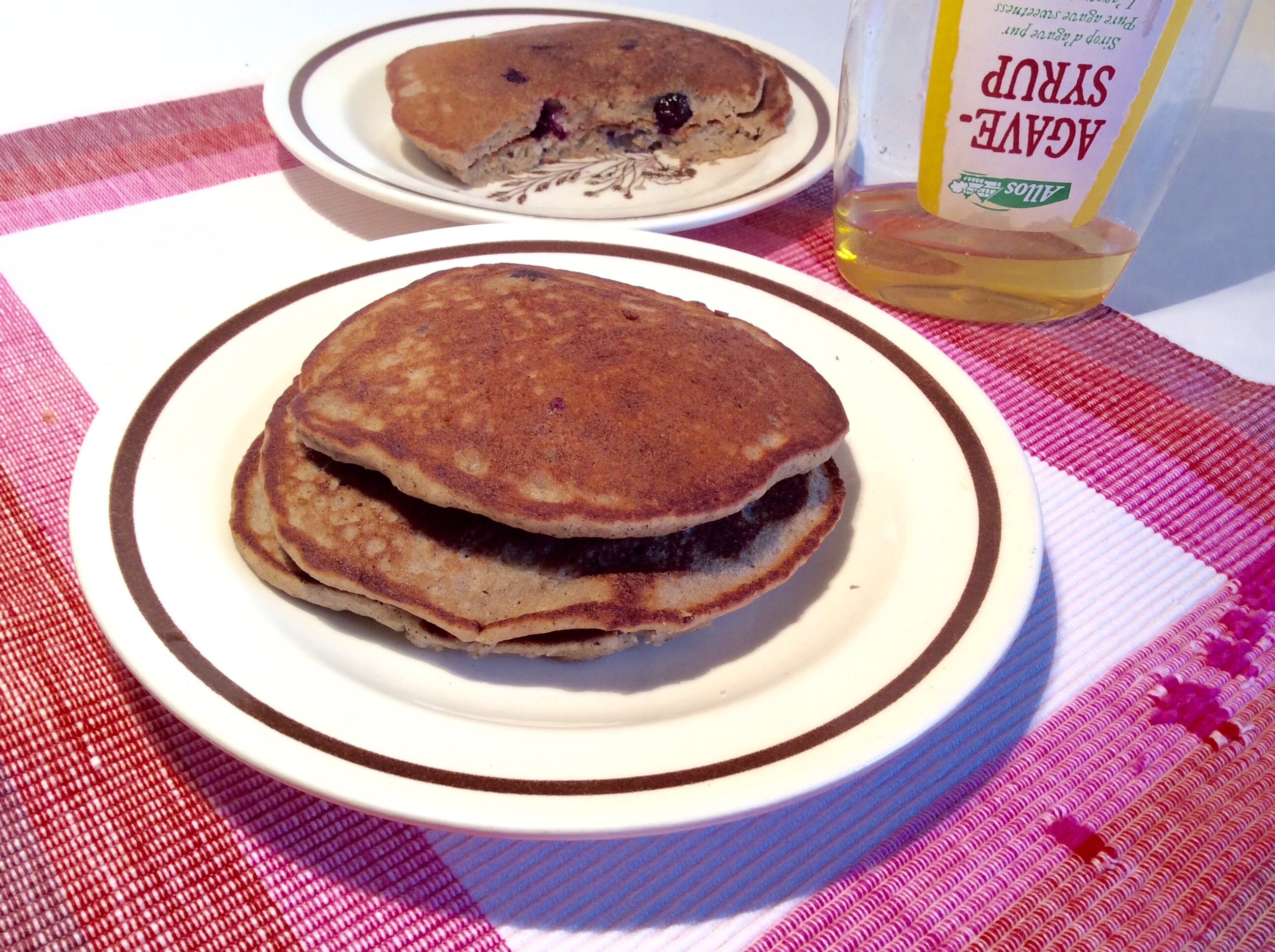 5. Déposer des louchées dans une poêle anti-adhésive légèrement huilée, sur un feu plutôt doux.* Les pancakes sont prêts à être retournés lorsque les bulles qui se forment à la surface éclatent. Cuire la deuxième face un peu moins longtemps que la première. Déguster avec du sirop d’érable, ou à défaut, du sirop d’agave.