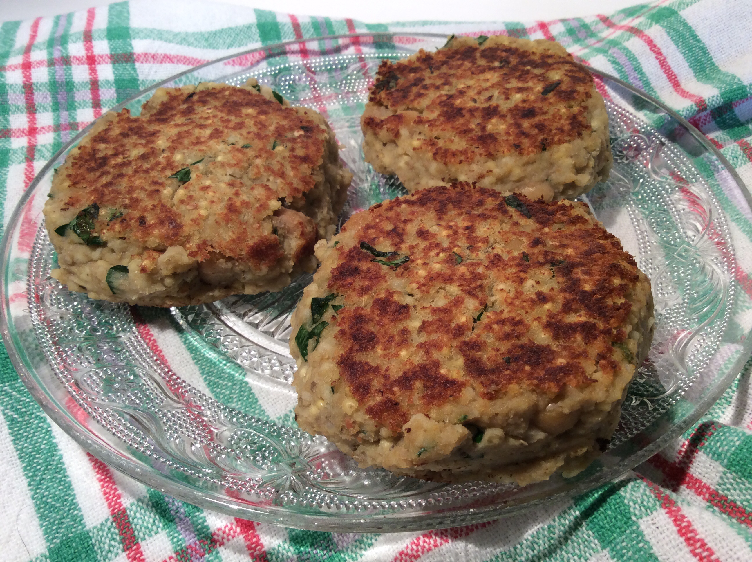 3. A ce mélange, ajouter le millet cuit, et les pois chiches entiers qui n’ont pas été mixés. Former des galettes à la main, que l’on fait revenir quelques minutes de chaque côté dans une poêle anti-adhésive légèrement huilée.