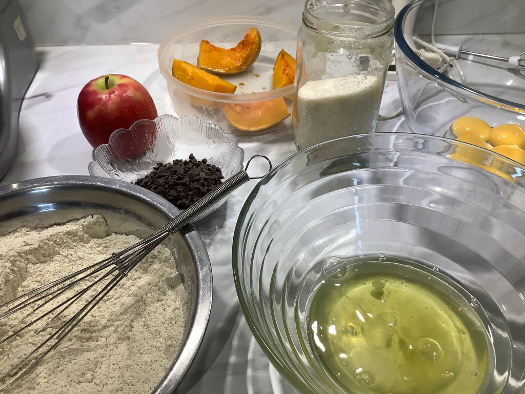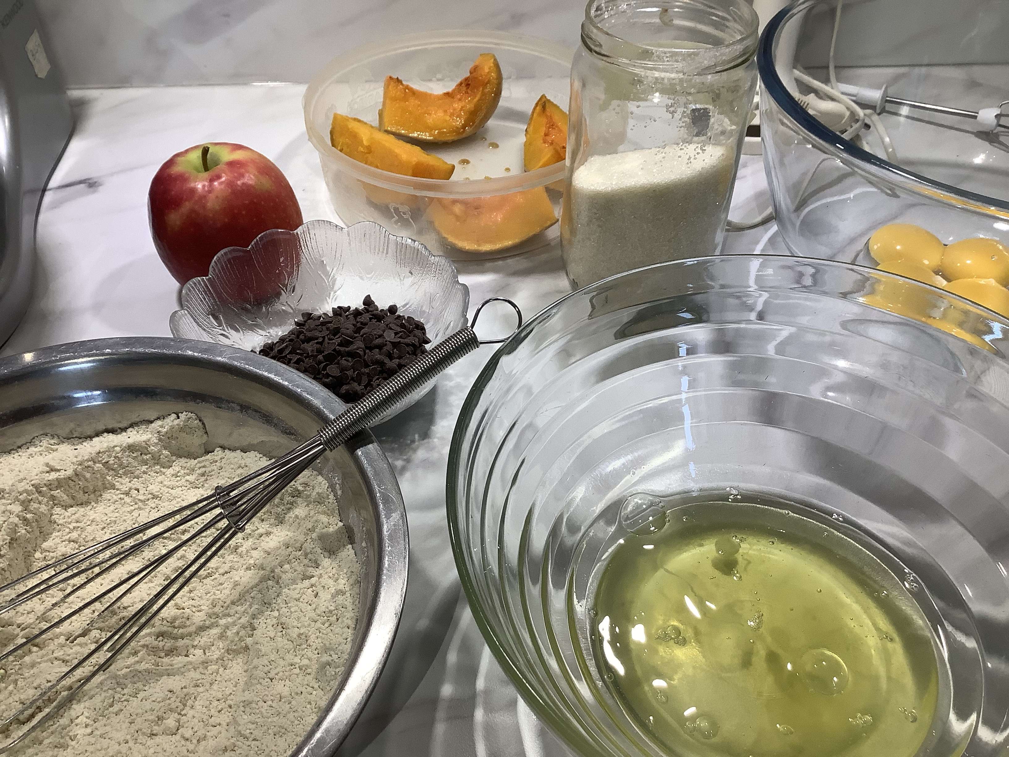 – 200g de chair de butternut cuite au four (les morceaux qui restent peuvent être congelés pour un prochain gâteau)