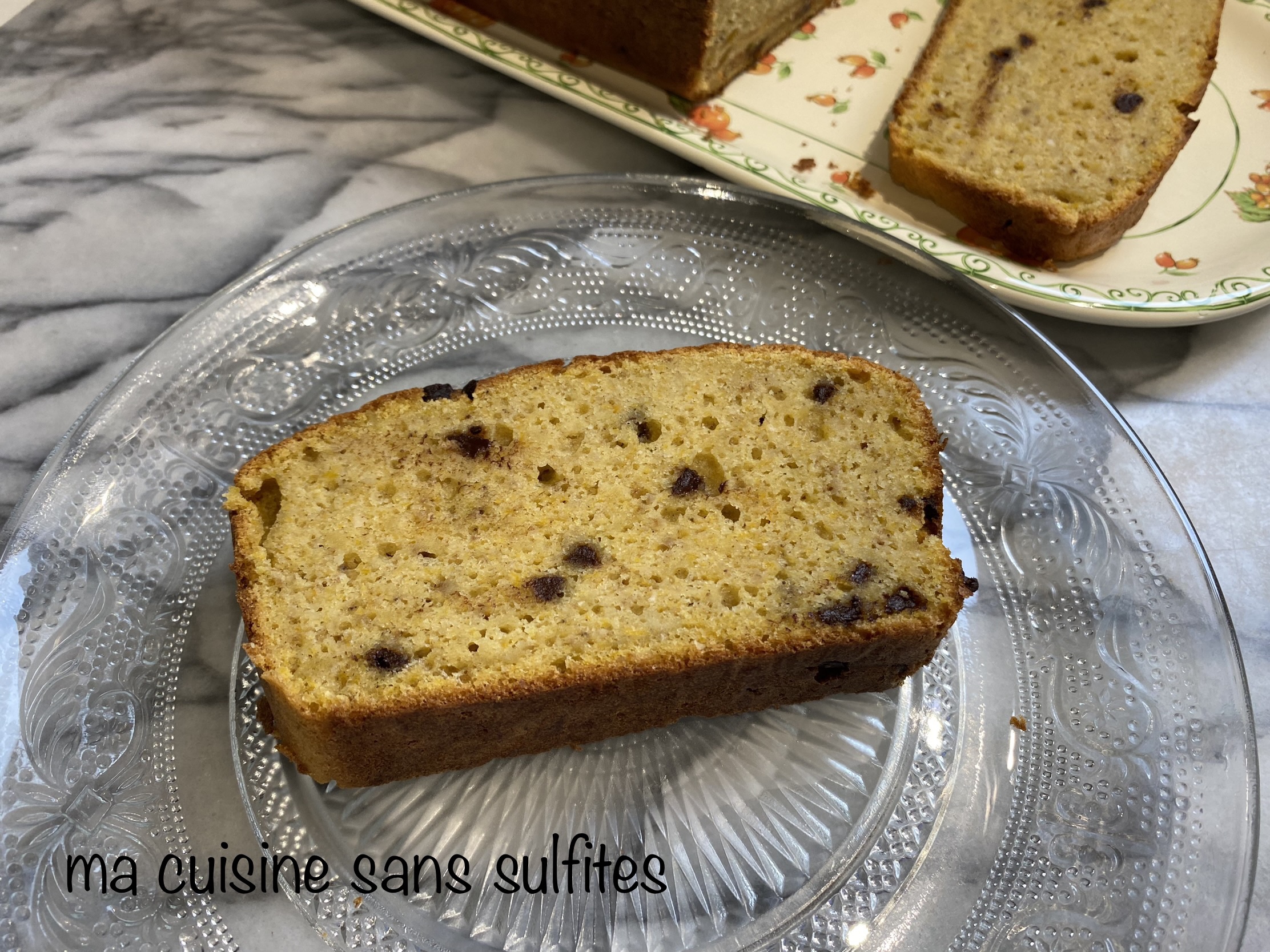 6. Terminer en incorporant de façon alternée le mélange de farines et les blancs d’oeufs. Ajouter des pépites de chocolat si l’on veut puis verser dans le moule chemisé. Cuire entre 50 et 60 minutes selon votre four. Vérifier la cuisson à l’aide de la pointe d’un couteau après 50 minutes.