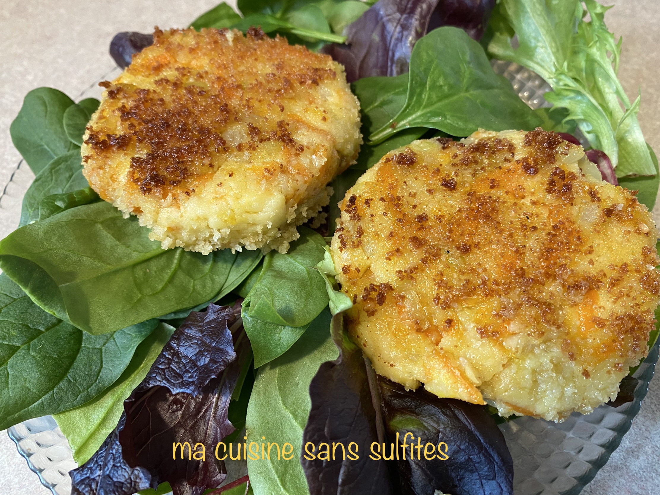 3. Mettre une grande poêle à chauffer avec un fond d’huile d’olive. Pendant ce temps, couvrir les galettes de chapelure. Faire cuire à feu moyen de chaque côté pour obtenir une belle couleur dorée. Servir avec une salade verte. On peut éventuellement compléter l’assaisonnement d’un peu de tamari (= sauce soja sans gluten).