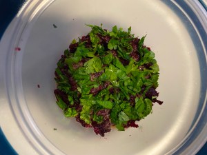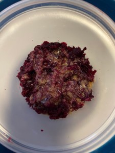 – de la betterave cuite. La mienne venait du congélateur, ce qui m’a permis de la râper plus aisément.