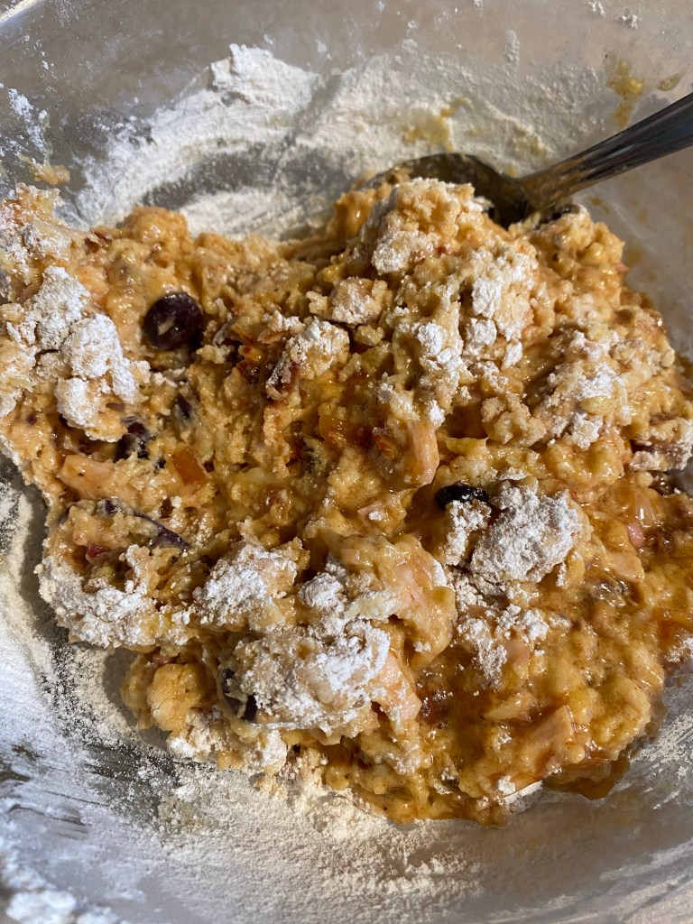 – Finir par incorporer rapidement et grossièrement le mélange de farines. Si la pâte paraît épaisse et contient des grumeaux, c’est tout à fait normal.
