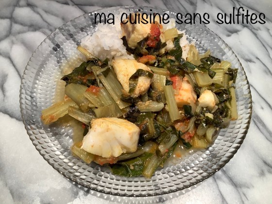 cardes et poisson au curry, quelques mots sur le problème des sulfites naturels, et un peu d’humour aussi!