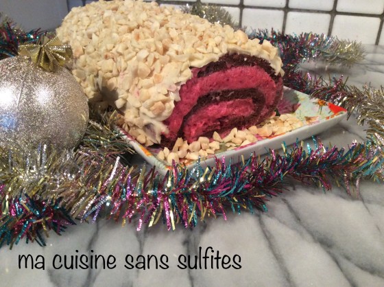 bûche de Noël sans gluten, sans sulfites ni additifs, à la mousse de canneberges