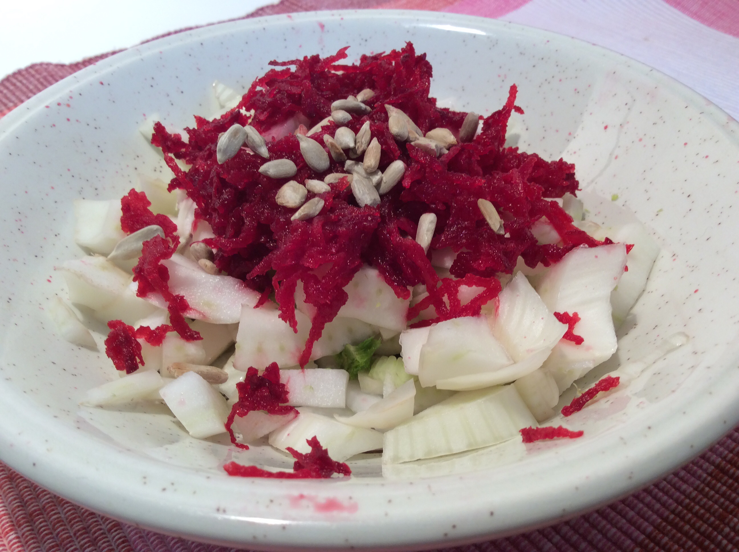 fenouil cru + betterave crue râpée + graines de tournesol (+ thon émietté)