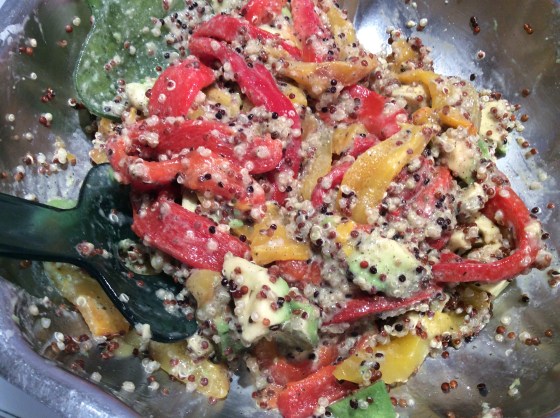 salade de poivrons, avocat et quinoa en sauce vinaigrette aux graines de courge (sans sulfites!)