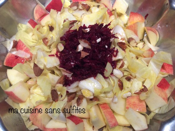 salade d’hiver à l’endive, pomme, betterave et amandes