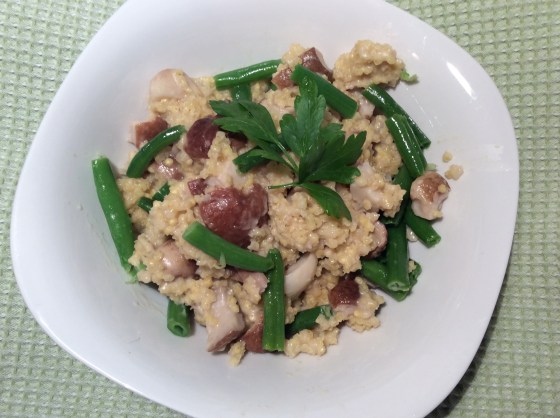 lamelles de poulet et champignons en sauce cumin (et haricots verts en accompagnement)