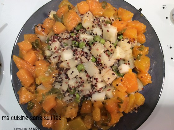 plat de quinoa, panais, petits pois et courge butternut à la sauge