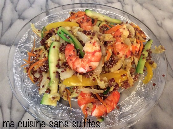 soupe d’inspiration thaï aux courgettes, carottes, et crevettes sans sulfites