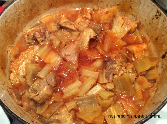 sauté de porc ou dinde avec bettes / cardes / bok choy dans un plat très relevé au gingembre et curcuma