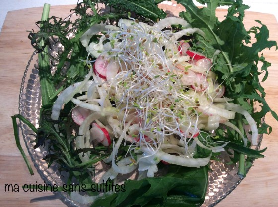 salade vitaminée au fenouil, radis et alfalfa, sur lit de mesclun