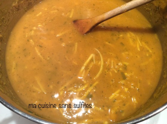 velouté de courge (potimarron ou courge shiatsu) aux grains de sarrasin et vermicelles de panais