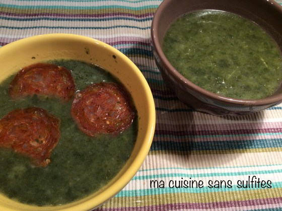 soupe de cresson, persil et pommes de terre au bouillon de pot-au-feu