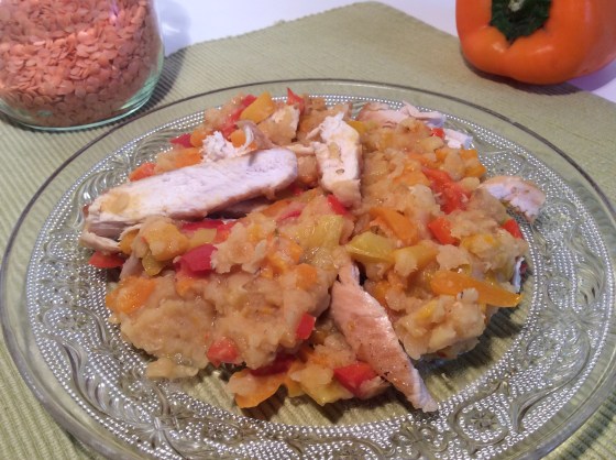 dahl de lentilles corail aux poivrons (et poulet, facultatif)