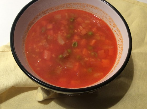 soupe à la tomate, céleri, carotte, petits pois et millet